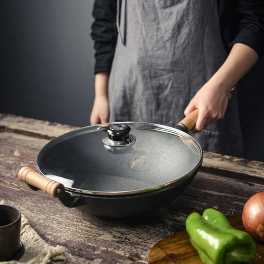 - Handle Design: Look for a cast iron wok with a sturdy handle that provides a comfortable grip. A long handle on one side and a helper handle on the opposite side offer stability and ease of use.